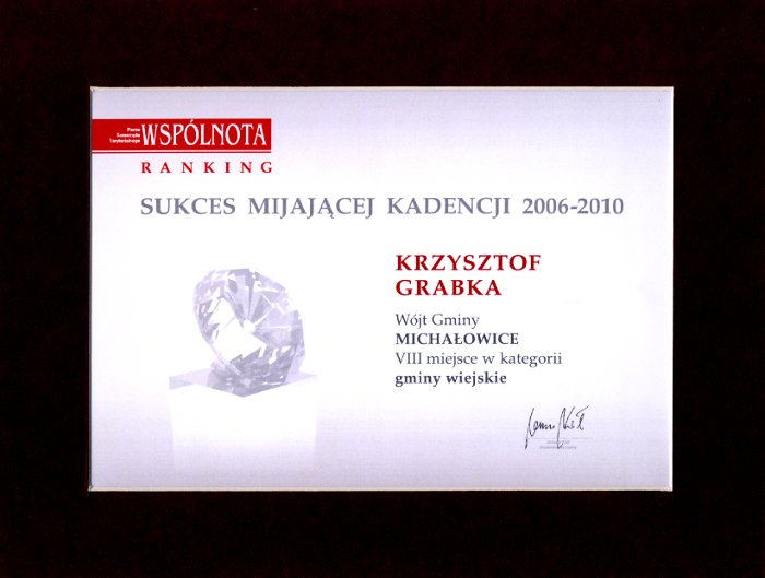 Nieuchronnie zbliża się koniec kadencji władz samorządowych. Pismo samorządu terytorialnego „Wspólnota” sporządziło podsumowanie, ogłaszając wyniki rankingu SUKCES MIJAJĄCEJ KADENCJI 2006-2010.