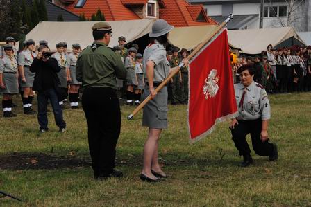 Komendantka hufca dh. podharcmistrz Beata Pawełczyńska odbiera nowy sztandar