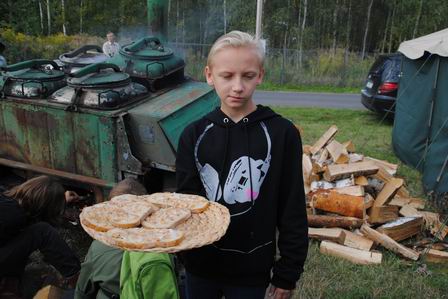 Harcerze gościli zwiedzających tradycyjną grochówką z kotła, chlebem okraszonym smalcem i kwaszonymi ogórkami oraz pysznymi kruchymi ciasteczkami z kolorowym lukrem, upieczonymi przez druhenki z michałowickich drużyn 13. MDH i 13. MDSH, których drużynową jest dh. pwd. Agnieszka Jachowicz.