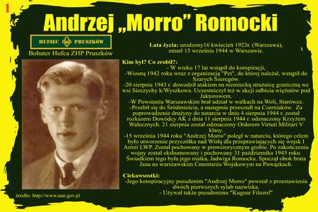 Scenę wykonały michałowickie „13” – drużyny (13 MDH im. Orląt Lwowskich i 13 MDSH „Kierunek Północ”), liczące w sumie około 50 osób. Blisko setka harcerek i harcerzy z pruszkowskiego hufca do późna uwijała się, przygotowując uroczystość nadania hufcowi imienia harcmistrza kapitana Andrzeja Romockiego ps. „Morro”, który spoglądał z plakatu na grupę niewiele młodszych od niego harcerzy.