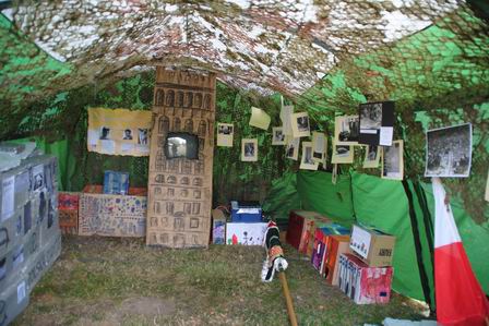 Część namiotów wypełniły eksponaty Izby Pamięci Hufca Pruszków. Pamiątki z okresu II wojny światowej zostały rozmieszone wśród kartonowych makiet warszawskich kamienic. Można było obejrzeć zdjęcia przyszłego patrona hufca – Andrzeja Romockiego „Morro”, jego rodziny i przyjaciół, a także zdjęcia z okresu powstania warszawskiego. Można było przeczytać fragmenty artykułów prasowych z tamtego okresu, obejrzeć archiwalne zdjęcia, a nawet wziąć do ręki prawdziwy karabin typu mauser, używany przez Niemców w czasie wojny. Wszystko lśniło i czekało na przybycie gości.