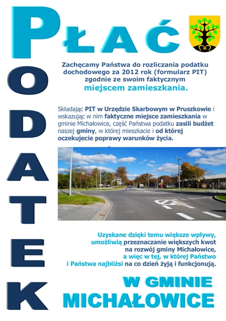 Zachęcamy Państwa do rozliczania podatku dochodowego od osób fizycznych za 2012 rok (formularz PIT) zgodnie ze swoim faktycznym miejscem zamieszkania, w Gminie Michałowice.