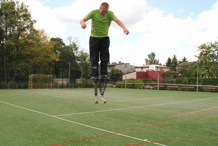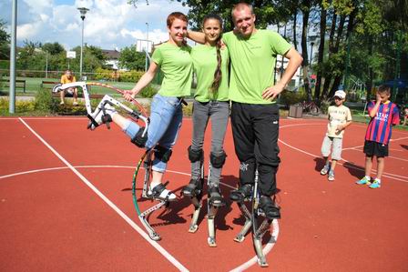 Dzieciaki namawiają instruktorów, by ci założyli profesjonalne szczudła „sprężynowe”. Dwie instruktorki oraz instruktor organizują pokaz na zakończenie zajęć, przed godziną 15:00. Po założeniu szczudeł stają się ogromni. Grają w piłkę nożną, biegają po obiekcie – bardzo szybko. Podskakują wyżej, coraz wyżej. Instruktor wykonuje salto. Rozlegają się brawa. Instruktor wykonuje kolejne salto.