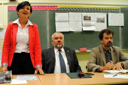 Zebranie otwiera sołtys Michałowic Wsi Adriana Król-Popiel. Obok wójt gminy Michałowice Krzysztof Grabka i pracownik urzędu Piotr Pacyna |