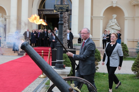 Na pałacowym dziedzińcu jubilatom na wiwat wystrzelili z armaty, przykładając pochodnię do lontu: poseł Barbara Czaplicka, wojewoda mazowieckie Jacek Kozłowski oraz wójt gminy Michałowice Krzysztof Grabka.