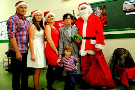Od prawej: Święty Mikołaj, sołtys Opaczy Małej Barbara Budzyniak, Mikołajowa (Katarzyna Janota), śnieżynka Karolina oraz elf Mateusz |