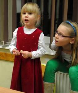 Zabawa zaczęła się od zapamiętywania swoich imion. Dzieci ustawiły się w kółku. Dziecko wymawiało swoje imię, a następne swojej koleżanki czy kolegi i tak kolejno – dookoła, do zapamiętania. „Zuzia; Zuzia, Madzia; Madzia, Maja; Maja, Jasiek; Jasiek, Angelika; Angelika…”. Sporo tych imion: w zabawie wzięło udział dużo, dużo dzieci. A wszystkie te imiona bez problemu zapamiętała Mikołajowa. Dzieciaki nawet nie zorientowały się, że to nauka, wcale nie taka łatwa. Zapamiętanie imion koleżanek i kolegów bardzo pomogło w zabawie i konkursach.