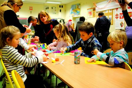 W klasie, gdzie przy szkolnych ławkach odbywały się konkursy, dzieci najpierw siadały w grupach wiekowych – starsze ze starszymi, a młodsze z młodszymi, a pod koniec imprezy dominowały grupy w różnym wieku. Czy to było zamierzone, czy przypadek? Usłyszała pani Mikołajowa, czyli Katarzyna Janota. – Jednym z najważniejszych celów, użyję tu słowa dydaktycznych, prowadzonych pod moim kierunkiem zabaw i gier jest integracja. Podam przykład: siedzi dziecko obok dziecka, każde przy swoim laptopie czy tablecie, każde maksymalnie skoncentrowane na swojej grze. Jedno do drugiego nie odezwie się nawet słowem, często przez wiele godzin. Wystarczy jednak prosta zabawa – konkurs edukacyjny, np. wspólne wykonywanie przez dzieci, rodziców i dziadków łańcucha na choinkę, a zostanie przywrócona więź, dzieci będą uczyły się funkcjonować w grupie; nie tylko wśród rówieśników, ale w zespole zróżnicowanym wiekowo, a także pokoleniowo – z rodzicami, dziadkami. Prowadząc zajęcia staramy się dbać o wszechstronny rozwój naszych podopiecznych. Dbamy o rekreację i edukację.
