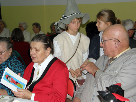 Sławomir Rymuza, dyrektor szkoły podstawowej, złożył zebranym najserdeczniejsze życzenia, zdrowia i radości oraz ciepła rodzinnego. Natomiast dzieci podarowały emerytom świąteczne, własnoręcznie wykonane kartki z życzeniami. Emeryci odwdzięczyli się i częstowali czekoladkami.