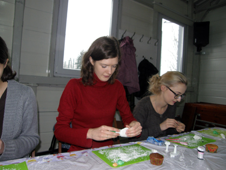 Izabela zarówno w Sokołowie jak również w Komorowie Wsi, Opaczy-Kolonii i Michałowicach z wielką wprawą kolorowała lukier, tak by bałwanki miały czarne oczy i marchewkowe nosy. Każdy uczestnik otrzymał cztery wypieczone, gotowe babeczki, które następnie należało ozdobić. Po zakończonej pracy wszyscy mogli wziąć do domu samodzielnie ozdobione babeczki. Przy pakowaniu pomocny był mąż pani Izy . Magdalena Mosiejczyk – Gołos, pracownik GOPS, czuwała, aby uczestnicy byli zadowoleni i aby warsztaty przebiegły sprawie.
