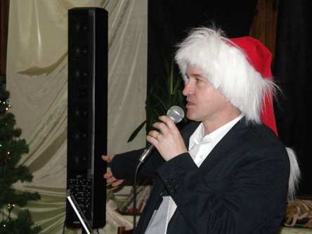 Zabawę choinkową prowadził Krzysztof Bartłomiejczyk. Aktor Teatru Roma |