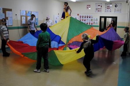 „Mam chusteczkę haftowaną”, oj, to chyba inna zabawa – w znacznie większą chustę |