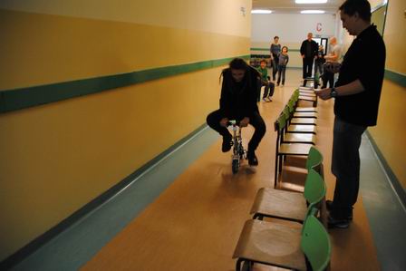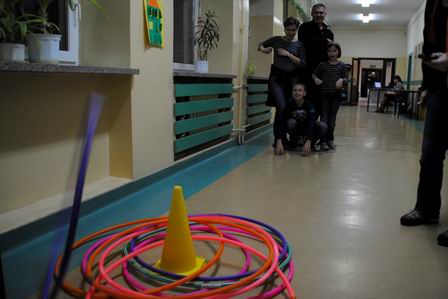 Było liczenie, wprawdzie nie ziarnek maku, ale fasoli, budowanie (w naszej gminie!) drapacza chmur z klocków; strzelanie karnych, ale piłką do rugby; zawody wioślarskie – na specjalnym przyrządzie; sztafeta kolarska na specjalnym rowerze – miniaturowym; rzucanie hula-hoopami do celu; zawody na zapamiętywanie; malowanie bombki na choinkę. Wszystko to na punkty.