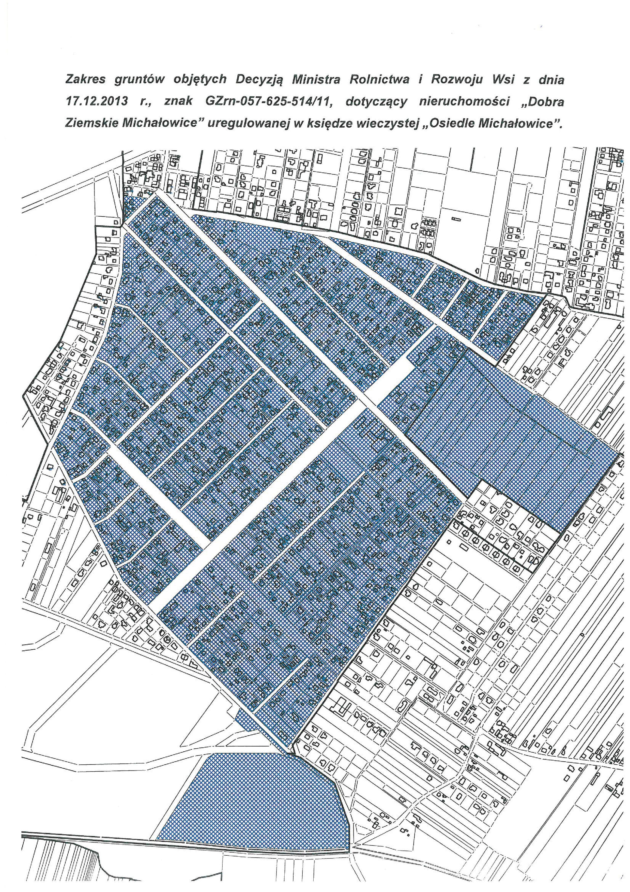 Przedmiotem ww. postępowania, toczącego się przed Ministrem Rolnictwa i Rozwoju Wsi, była ocena prawidłowości przejęcia, w ramach dekretu PKWN z dnia 6 września 1944r. o przeprowadzeniu reformy rolnej, nieruchomości ziemskiej stanowiącej dawniej własność Barbary Grocholskiej oznaczonej jako „Dobra Ziemskie Michałowice”, o ogólnej powierzchni 316,0769 ha, w skład której wchodzą: „Osiedle Michałowice”, „Osiedle Nowe Grocholice” i majątek „Michałowice lit. G”. Ww. grunty stanowią dużą część terenów wchodzących m.in. w skład Gminy Michałowice.