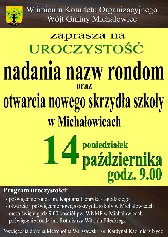 Tytuł: Uroczystość nadania nazw rondom oraz otwarcia nowego skrzydła szkoły w Michałowicach.