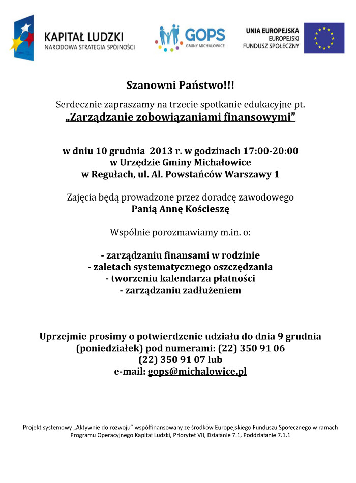 Tytuł: Spotkanie edukacyjne "Zarządzanie zobowiązaniami finansowymi"