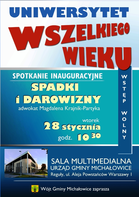 Tytuł: Uniwersytet Wszelkiego Wieku - spotkanie inauguracyjne pt.: SPADKI i DAROWIZNY
