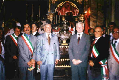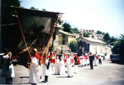 Święto rozpoczęło się o godz.1100 uroczystą Mszą Św. z udziałem naszej gminnej delegacji w kościele Św. Jerzego - Patrona Vico nel Lazio. W rozpoczęciu Mszy Św. Ksiądz Proboszcz Don Rinaldo Pelone w gorących słowach powitał naszą delegację, opisał cele naszego pobytu i życzył nam i władzom Vico nel Lazio owocnej współpracy dla dobra naszych społeczności. W drugiej części Mszy Św. odbyło się uroczyste wyjście z kościoła i procesja wokół i ulicami miasta. W procesji wzięli udział burmistrzowie sąsiednich miast z chorągwiami swoich miast. Delegacja naszej gminy została uhonorowana pierwszym miejscem w kolumnie podążającej za czołem procesji. Procesja trwała dwie i pół godziny. Po procesji nasza delegacja została przyjęta w zakrystii przez Księdza Proboszcza Don Rinalda Pelone, który w gorących słowach i gestach podziękował nam za udział w uroczystościach Św. Jerzego- Patrona Miasta.